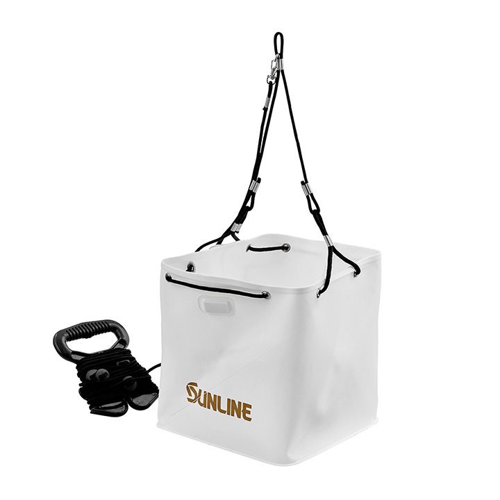 巾着式の水汲みバケツ。過去モデルからサイズアップすることによって十分な容量の水を確実に汲み取ることが出来ます。