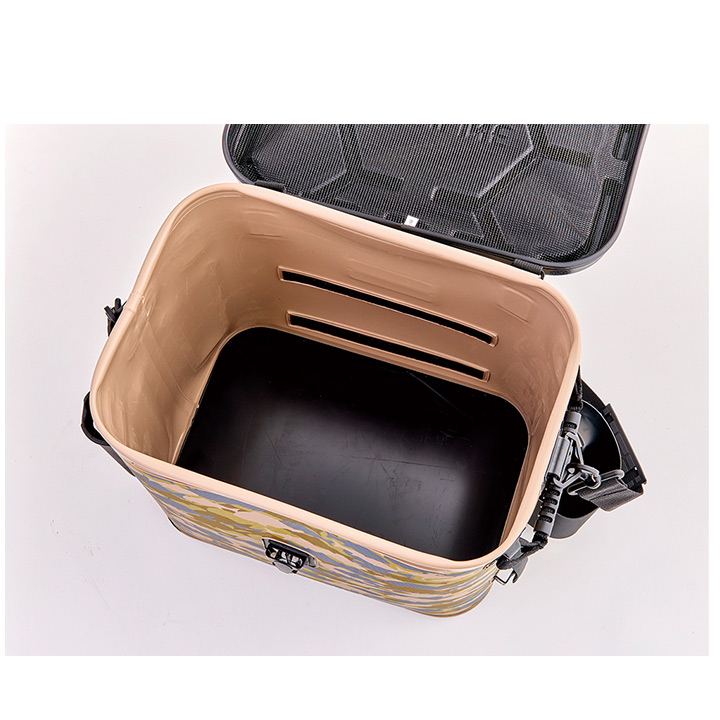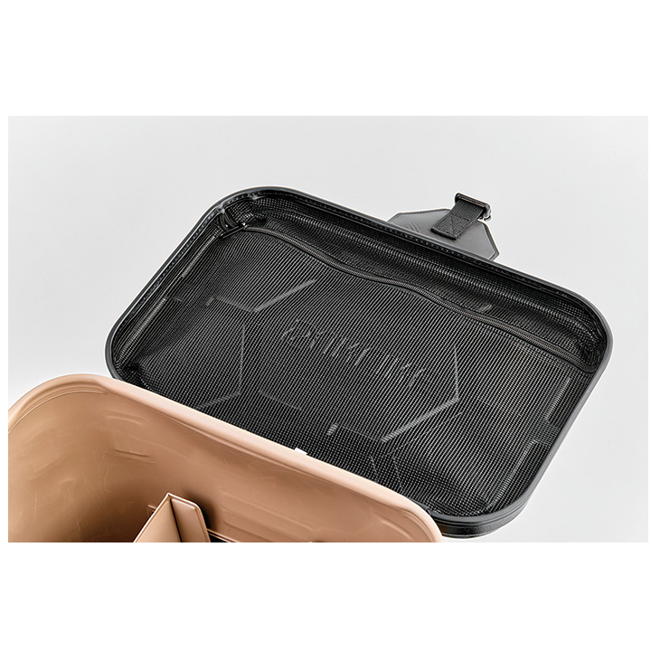 ペットボトルや小物を収納できるマルチホルダー、プライヤーホルダー、ロッドホルダー(2本分)、内部仕切り版付き。