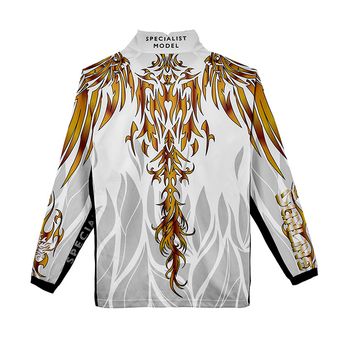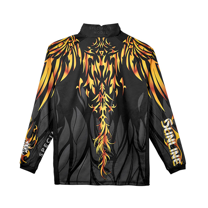 夏場に最適な吸水速乾生地のフィッシングシャツです。ハリがありやや高めの襟が強い日差しから肌を守ります。
