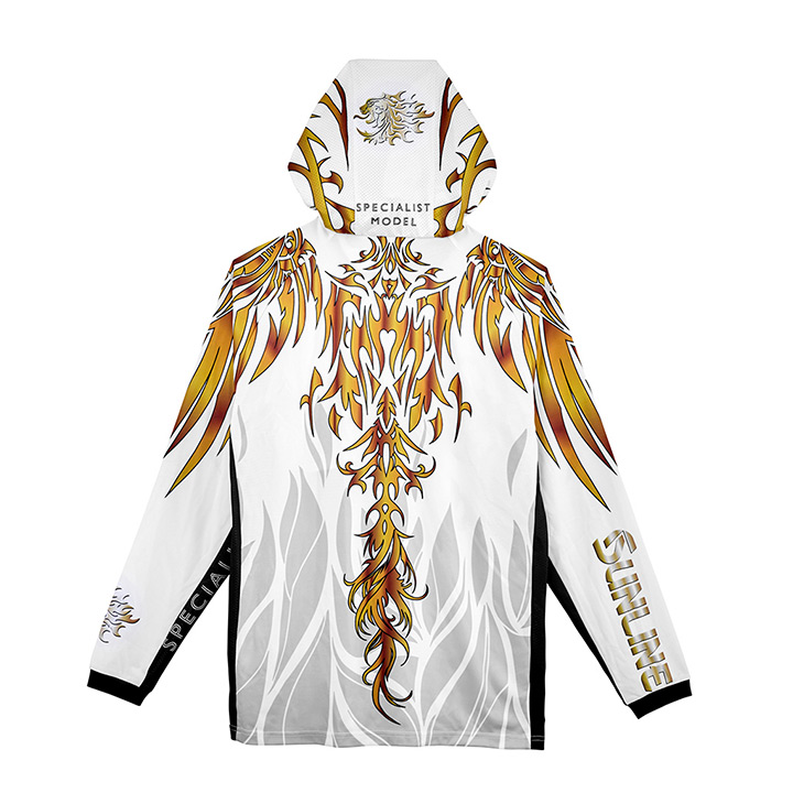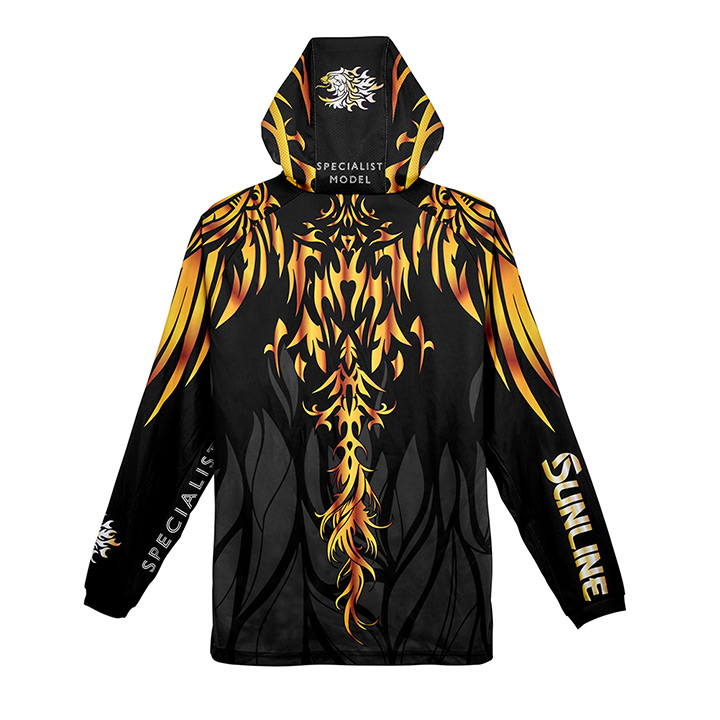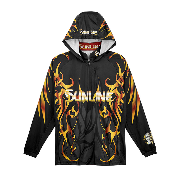 夏場に最適な吸水速乾生地のフィッシングフーディーです。強い日差しから首~頭部の肌を守るフード付き仕様。