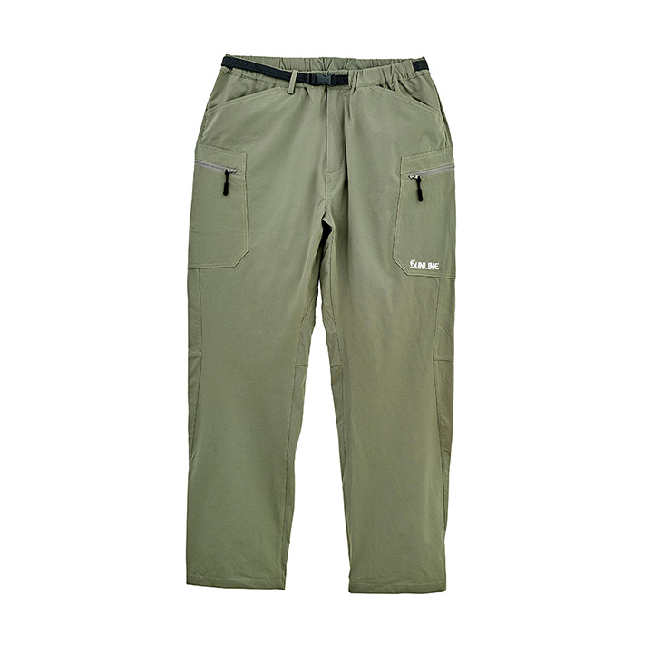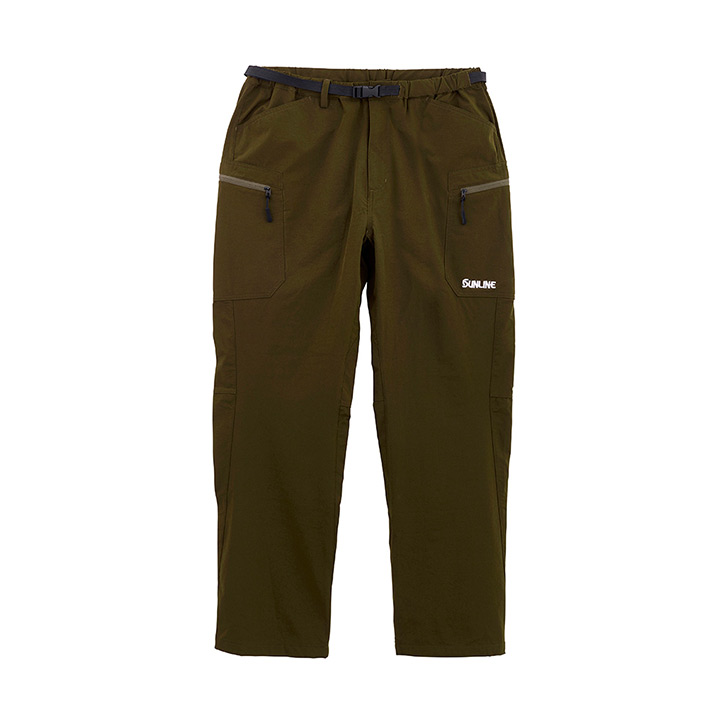 アウトドアシーンに最適なロングパンツ。両側のサイドポケットはファスナー付きでルアーケース等の収納も可能な大きさです。バックポケットにもファスナーが付いており、正面腰ポケットと合わせて計6個のポケットが付いており収納力は抜群。釣り場で考えられるあらゆる動作に追従する高いストレッチ性を持った生地を採用しています。