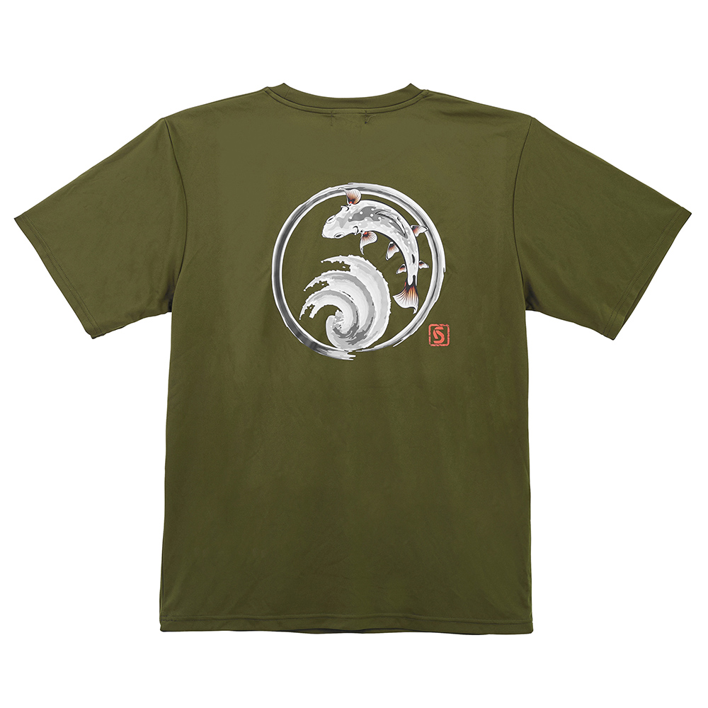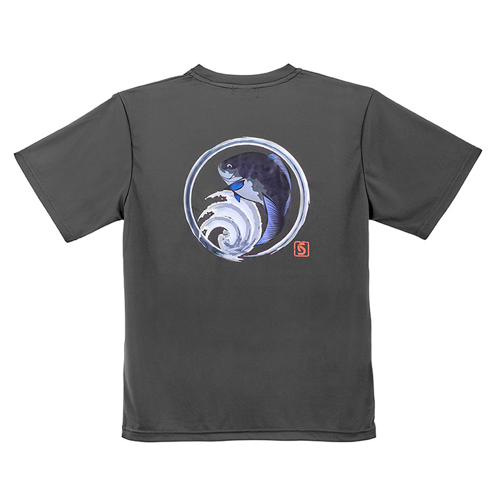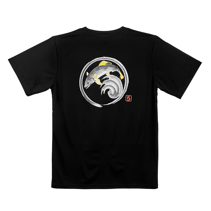 背面には墨絵テイストで描かれた魚のオリジナルデザインを大胆にプリント。