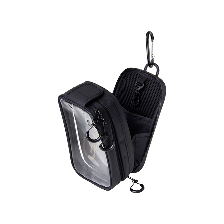 ●スマートフォン撮影対応タイプ(クリアタイプ)とツールポーチの縦型と横方向に取り付け可能な横型タイプ。