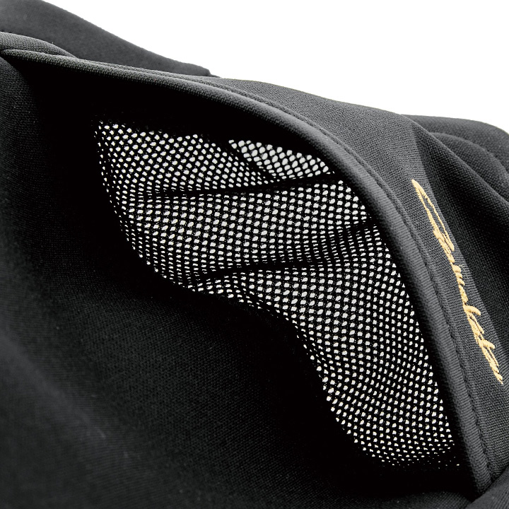 ●鼻部分に形状保持樹脂パーツを入れ、後頭部にはゴムスピンドルアジャスターでマスク部分のフィット感を調整可能。