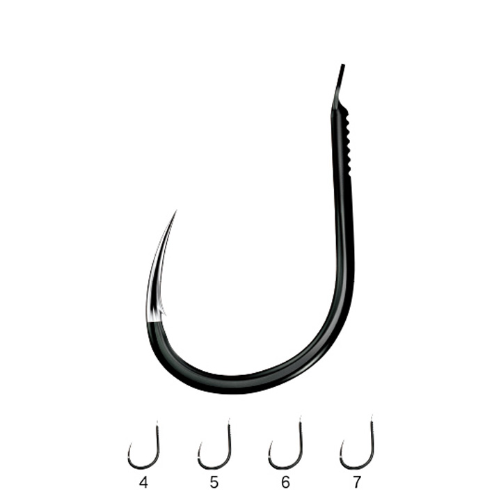 鈎先の絶妙なロングテーパー設計とトップレスコート、さらに半スレを加えることで、鮎鈎に匹敵する鈎立ちを実現。グレが餌を咥えて違和感を覚えた瞬間には、既に鈎先が口元へ刺さっています。また、好みに併せて使用できる「右ひねり」と「左ひねり」、そしてストレート形状の計3種類。良い角度で素早く鈎が立って鋭く食い込み、その瞬間に合わせが完了します。カラーはグレが好むノリをイメージしたダークグリーン。