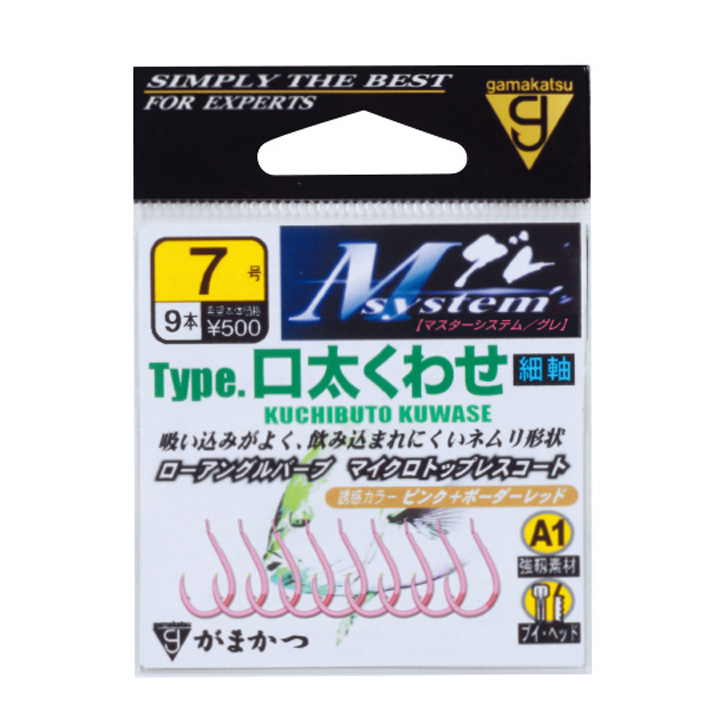 1.75号までの竿で口太グレを狙うのに適しています。鈎先を強めにネムらせ、コンパクトで吸い込みのよい形状に。飲み込まれにくく、鋭い侵入角度でスムーズなフッキングが可能。