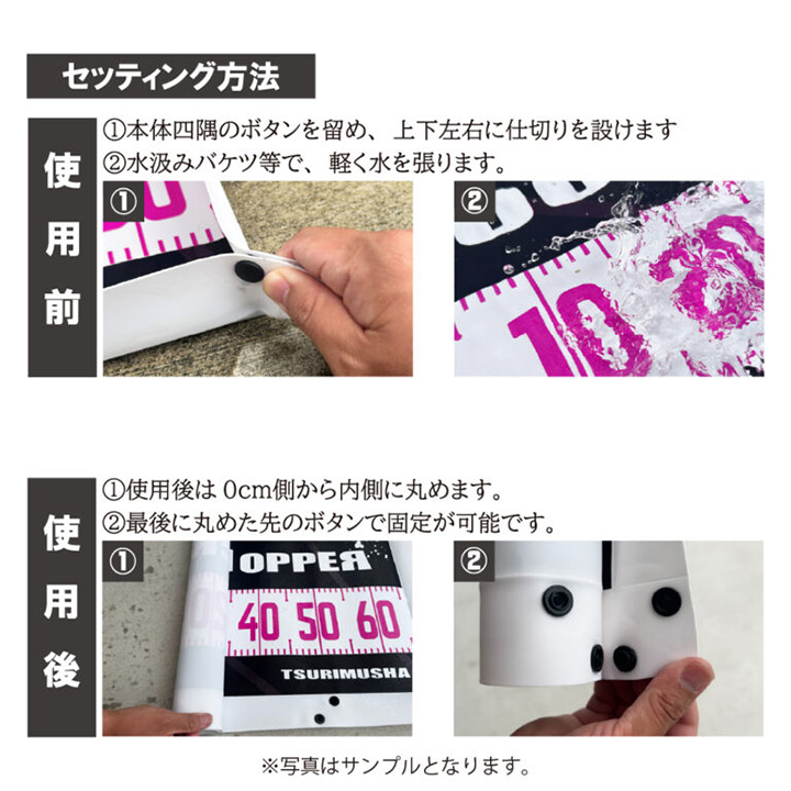 Sサイズは1匹長寸タイプ、Lサイズは複数匹をまとめて計測できますので、魚をキープされる方におススメの仕様となっております。