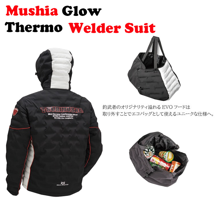 表生地は撥水加工、内綿には軽量&保温力に優れたサーモライトを採用しています。また、釣武者のオリジナリティ溢れるEVOフードはファスナーで取り外しが可能。外した際はエコバッグとしても活躍するユニークな仕様です。極寒でも活躍する性能に加え、ウェルディッド(高周波)加工とキルトデザインで普段使用にもベストな1着を目指しました。